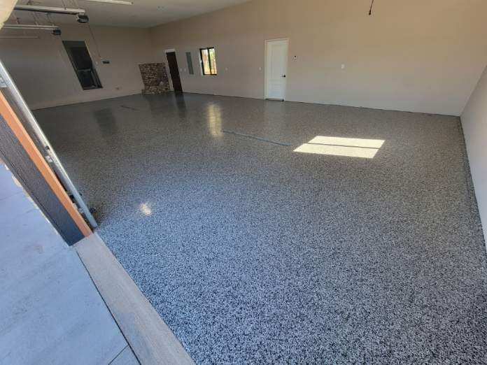 Most residential epoxy floor installations are completed in 1 to 3 days, depending on the size of the project and the condition of the existing concrete. The timeline typically includes surface preparation, repairs, base coat application, decorative elements, and a protective topcoat.